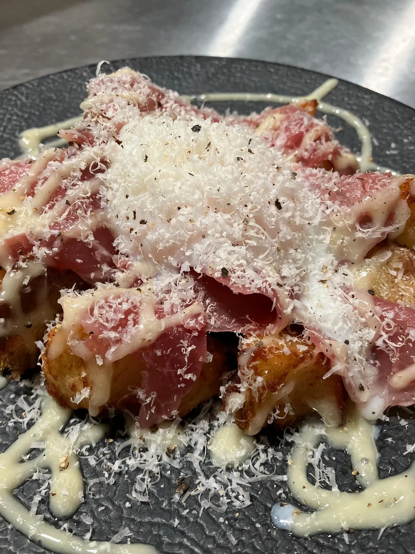 あなたの飲み会をさらに楽しいものにするための一品をご紹介します。一軒目からでも楽しんでいただける、PODUNKオススメのクラフトビールにぴったりな「ポテトフライビスマルク風」。サクサクのポテトフライに生ハムの塩味と濃厚な半熟卵、さらにたっぷりのチーズが絶妙なハーモニーを奏でます。この贅沢な一皿は、二軒目に行かなくてもこれだけで大満足間違いなし!お仕事帰りの一杯に、ぜひお試しください。心からリラックスできる瞬間をお届けします。皆さまのお越しをスタッフ一同、心よりお待ちしております。おいしい料理と楽しい時間を共有しましょう!