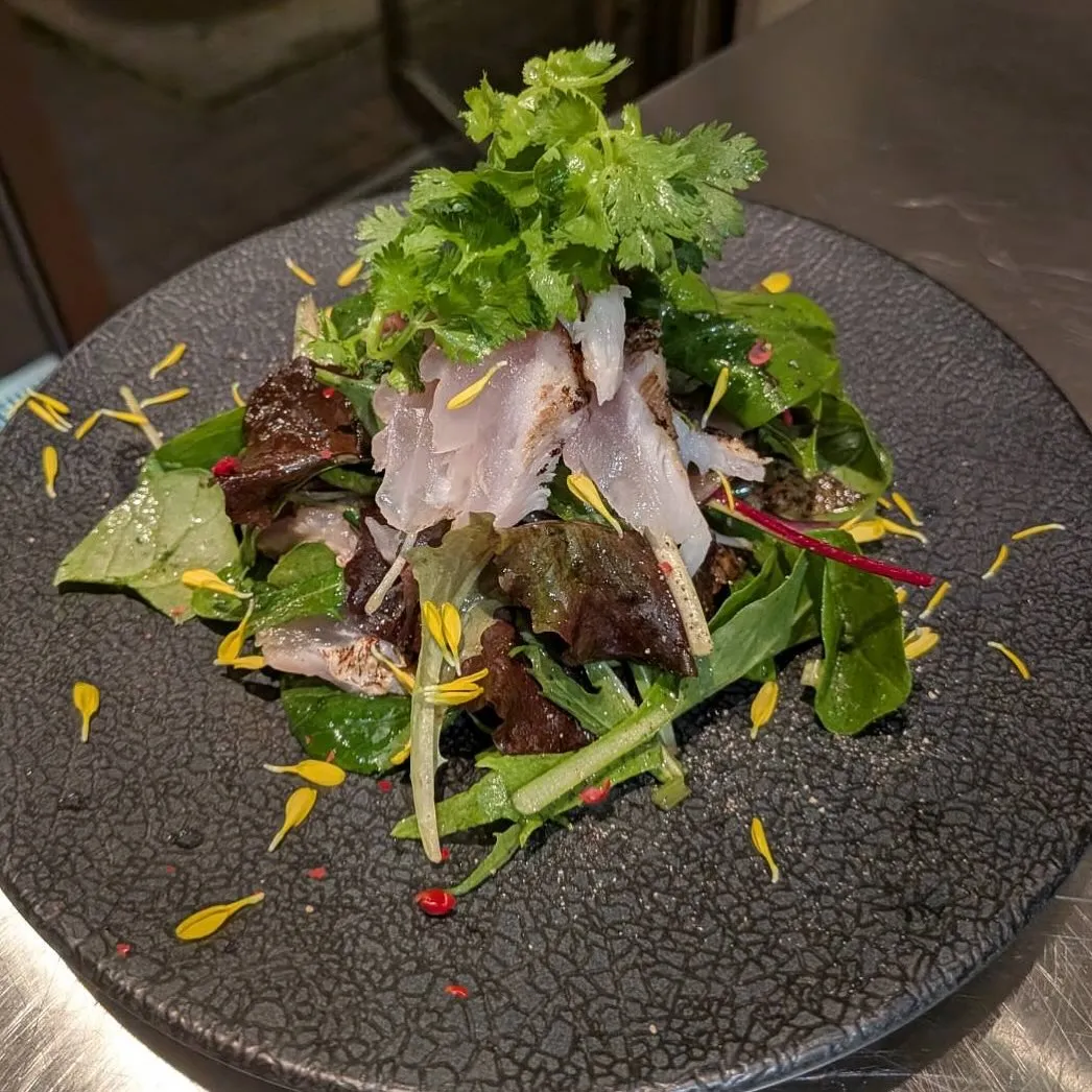 炙りカマスのエスニック和え 2026/04/19 炙りカマスのエスニック和え 皮目をサッと炙って サラダ仕立てに 皮の香ばしさと脂の旨み 白ワインを片手に 前菜として。 週明けからGWまでの 最高の活力源ですね #ナチュール #奥渋 #居酒屋 #創作料理 #バラクーダ 奥渋周辺で創作料理 創作料理