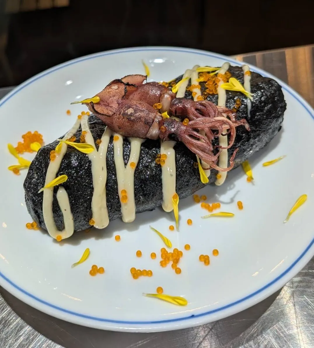 イカスミオムレツイカスミの味が好きで、でもイタリアンじゃない料理が良くて居酒屋メニューに昇華した逸品。炙った旬のホタルイカと共に。是非!#居酒屋#和食#日本料理#ホタルイカ#イカスミ和食当店でご…